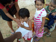 Four of my little ones, sat in my classroom with their little book sachels, waiting for class to begin. They didn't understand like the older ones that we were not there for class. One of my favorite little boys, I won't call him 'bad', puntai, he is about 4 years old, crawled up the wall, and in and out the window opening of the unfinished building. I tried to tell him in words and sign that he would fall and hurt his head. He seemed to understand me better than any of the other little ones. He shook his head, and tried even greater feats. Of course he did eventually fall, but tried to act as if he were not hurt. He is a character. He is always trying to make some sort of weapon, fights with the others boys, pushes the girls, and does the opposite of whatever I suggest. He usually spends the first part of class time running around doing his own thing. I've learned to ignore him, because eventually he will rejoin us and participate.